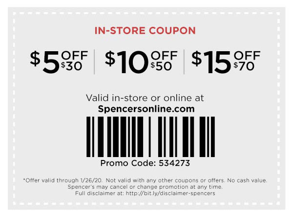 40% Off Spencers Coupons & Promo Codes - October 2022 Up to 40% off when using these official Spencers coupons and promo codes ... Up to 50% off any purchase of a wide variety of items in the Accessories ...