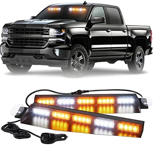 XRIDONSEN Emergency Strobe Visor Lights Interior Windshield Amber White Warning Flashing Lights for Construction Vehicles Trucks w/ Take Down, Deck ...
